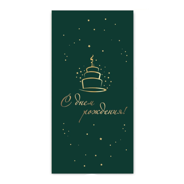 Открытка-конверт для денег премиум "С днем рождения! Золотой торт" 8,2*16,5см 9824 Квадра