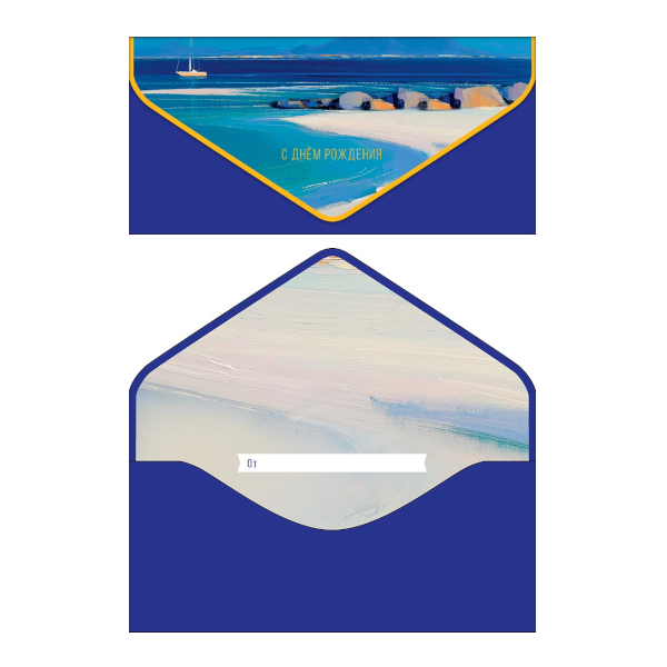 Открытка-конверт для денег "С Днем Рождения. Парусник на горизонте" 9,3*19см 1216.531 Арт Дизайн