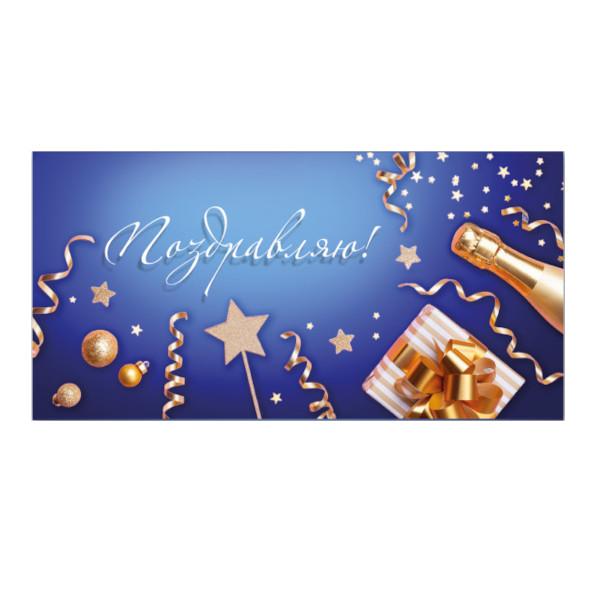 Открытка-конверт для денег стандарт "Поздравляю! Синий" 8,1*16,4см 9197 Квадра