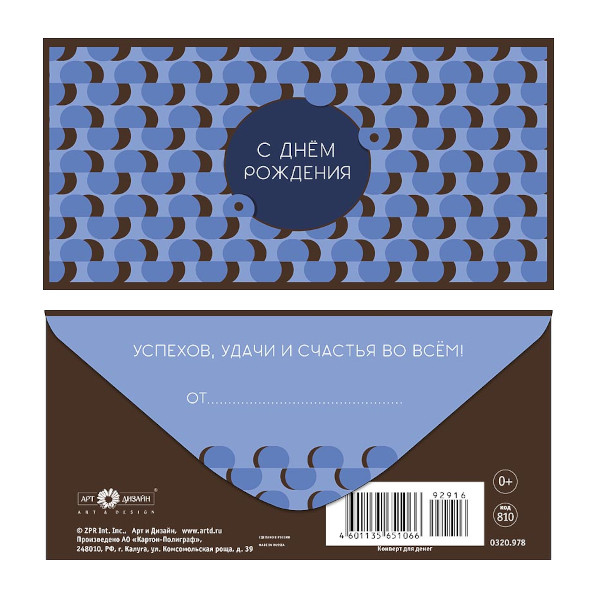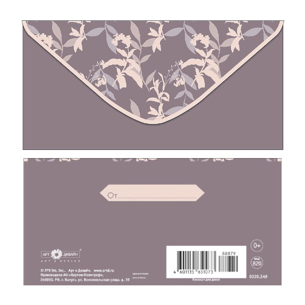 Доп. описание: Вырубка, ламинация софт тач, фольга Тип: Конверт для денег Упа...