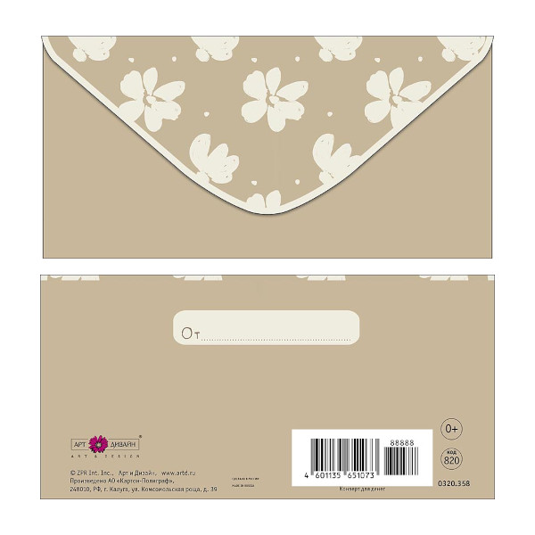 Открытка-конверт для денег "Орнамент. Цветы" 8,3*16,7см 0320.358 Арт Дизайн