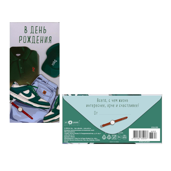 Доп. описание: Открытка-конверт Тип: Конверт для денег Упаковка единицы товар...