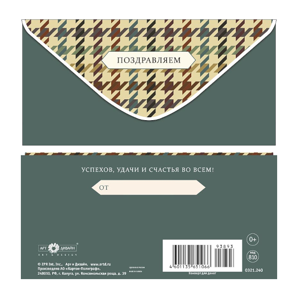 Открытка-конверт для денег "Поздравляем. Узор собачий клык" 8,3*16,7см 0321.240 Арт Дизайн
