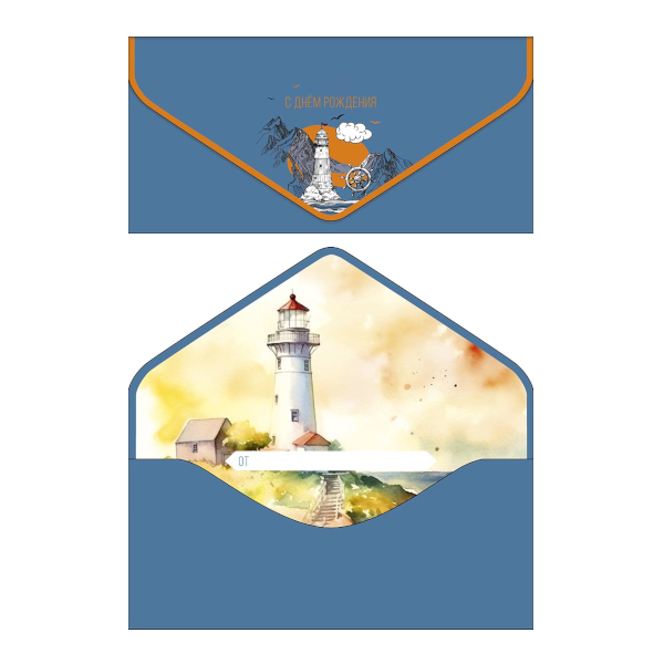 Открытка-конверт для денег "С Днем Рождения. Маяк" 9,3*19см 1216.266 Арт Дизайн