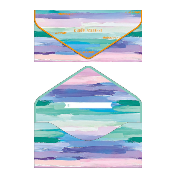 Открытка-конверт для денег "С Днем Рождения. Пастельные полосы" 9,3*19см 1216.433 Арт Дизайн