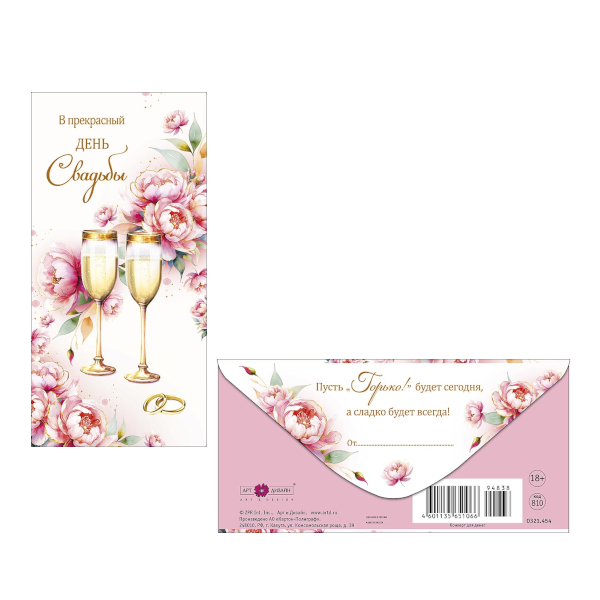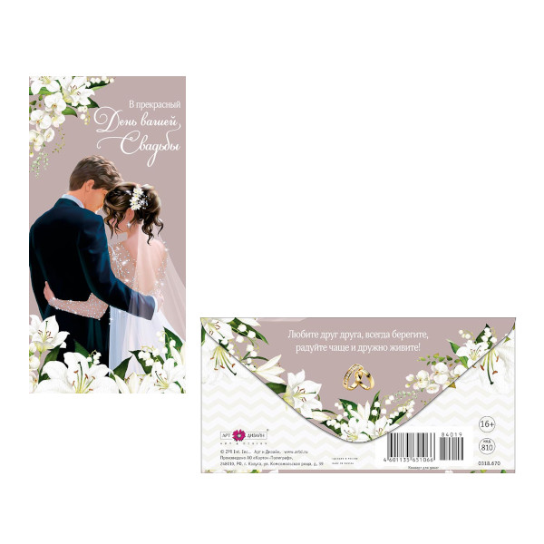 Открытка-конверт для денег "В прекрасный день Свадьбы" 8,3*16,7см 0321.454 Арт Дизайн