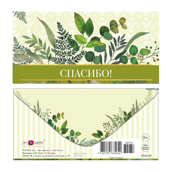 Открытка-конверт для денег "Спасибо! Зелень" 8,3*16,7см 0318.339 Арт Дизайн