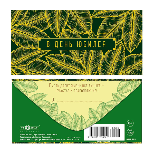 Открытка-конверт для денег "В день юбилея. Желтые листья" 8,3*16,7см 0318.285 Арт Дизайн