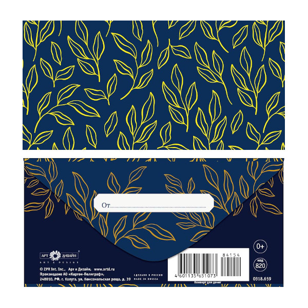 Открытка-конверт для денег "Орнамент. Листья" 8,3*16,7см 0318.659 Арт Дизайн