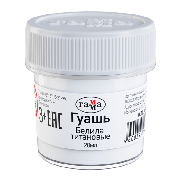 Гуашь Гамма белила титановые 20мл 0.20.В020.0012