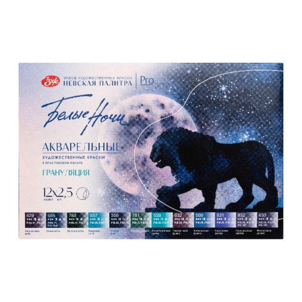 Акварель худож. "Белые ночи. Грануляция" 12цв, без кист., кюветы 2,5мл, пластик. пенал 19422005