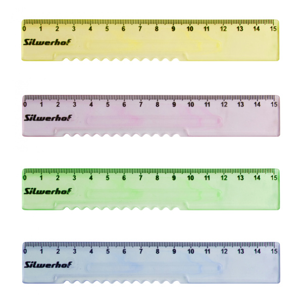Линейка 15см, пластик, тонир. ассорти
