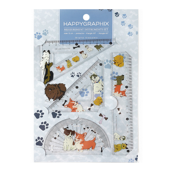 Геометрический набор 4предм.(линейка 15см, угольники 45° и 60°, транспортир) "Щеночки" 45-0017/08