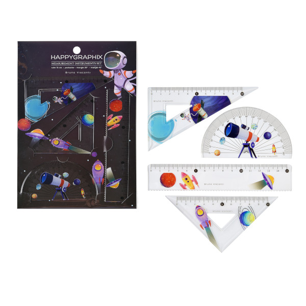 Геометрический набор 4предм.(линейка 15см, угольники 45° и 60°, транспортир) "Космос" 45-0017/07