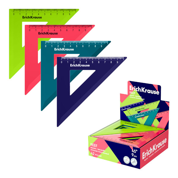 Треугольник 45град, 9см, пластик, ассорти "Reef" 63195 Erich Krause