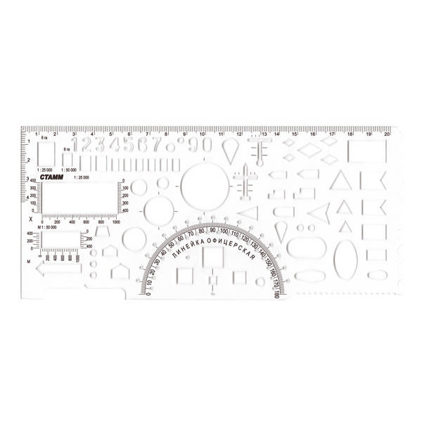 Доп. описание: Линейка-трафарет офицерская 20см, с печатной шкалой. Имеет 65 ...