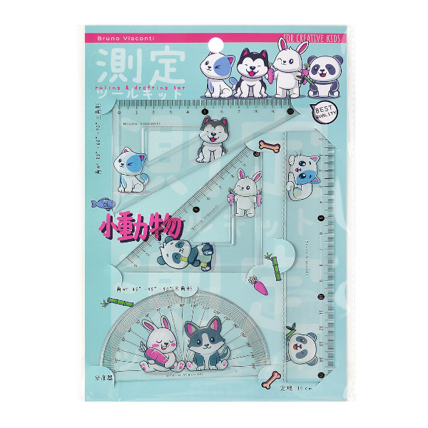 Геометрический набор 4предм.(линейка 15см, угольники 45° и 60°, транспортир) "Kawaii ani" 45-0017/08