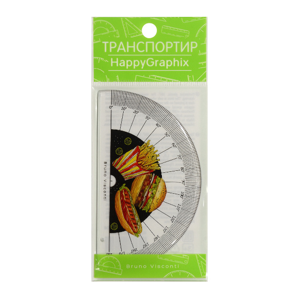 Транспортир 180град, пластик, рисунок "Гамбургер" 45-0020/04 Bruno Visconti