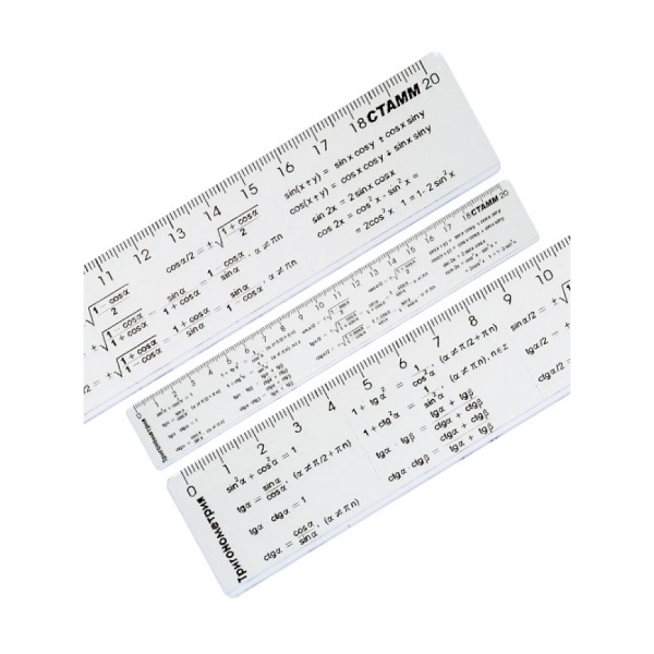 Линейка 20см, пластик, прозрачный "Тригонометрия" справочная ЛС04 СТАММ.