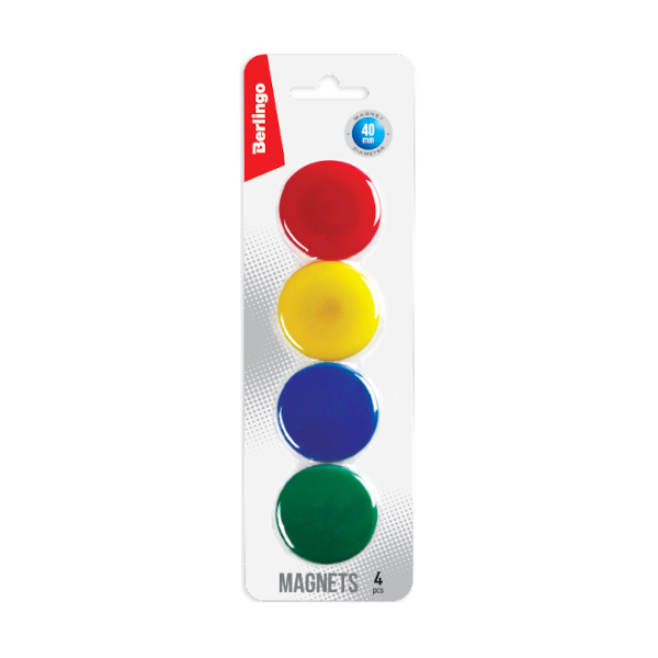 Магнит для белой доски 40мм, 4шт, круглый, ассорти, блистер SMm_04010 Berlingo