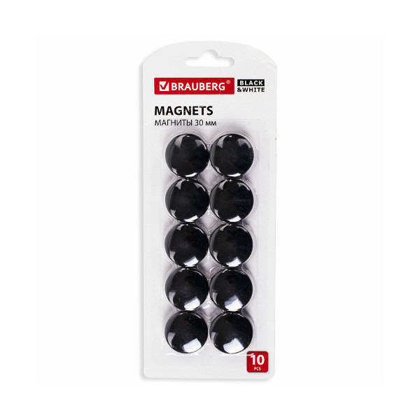 Магнит для белой доски 30мм, 10шт, круглый, черные/белые, УСИЛЕННЫЙ, блистер 237468 Brauberg