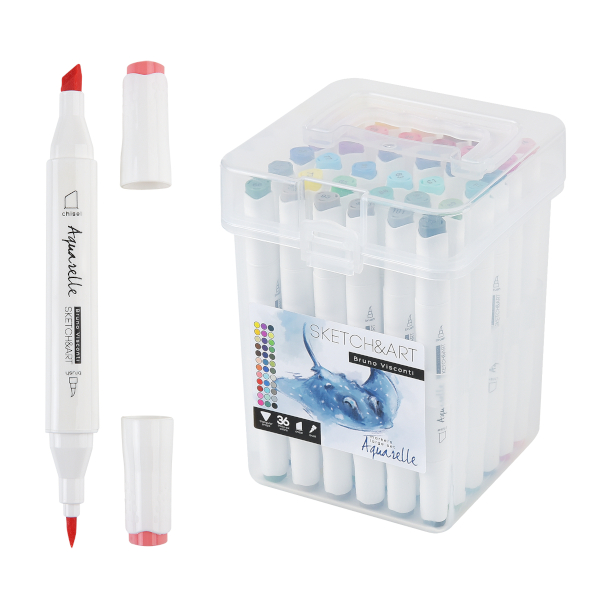 Набор маркеров акварельных Bruno Viscont "Sketch&Art" 36цв., двустор., кисть/скош. 22-0170