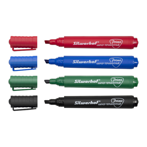 Набор маркеров перм 2-5мм, спир.осн., скош., ассорти 4шт, пластик. корп. "Prime" 1461187 Silwerhof