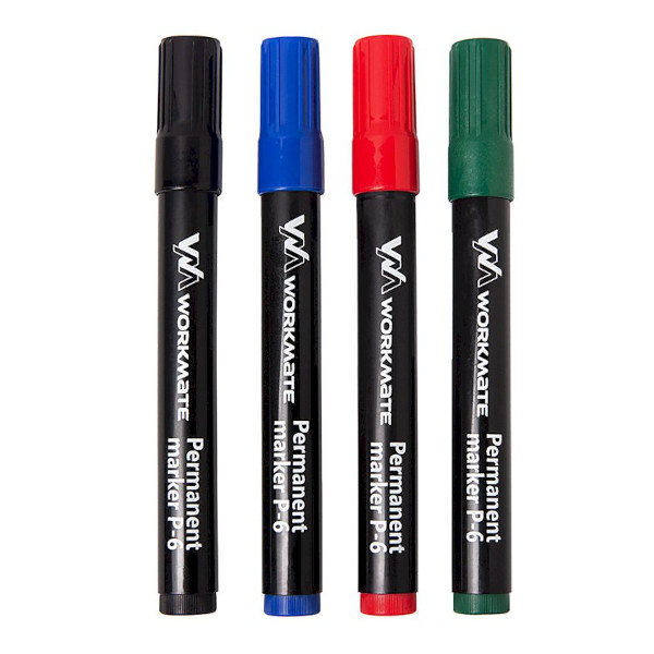 Набор маркеров перм 1,5-3мм, спирт.осн., пулевид, ассорти 4шт, пластик. корп. P-6 15-0943 Workmate