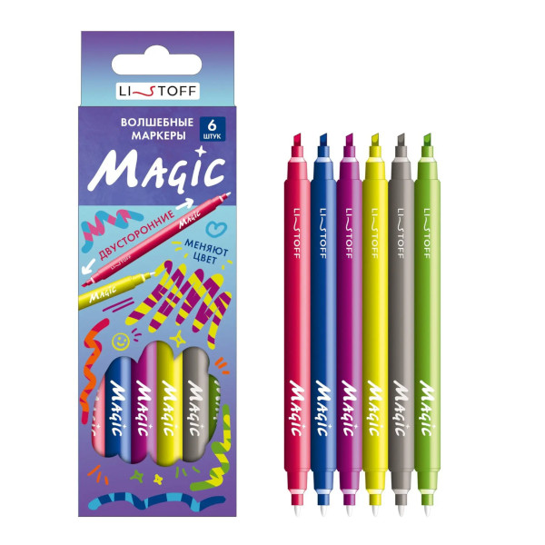 Набор маркеров Listoff "Magic. Хамелеон" 12цв., двустор., пулевид./скош., карт.уп НМВД120041