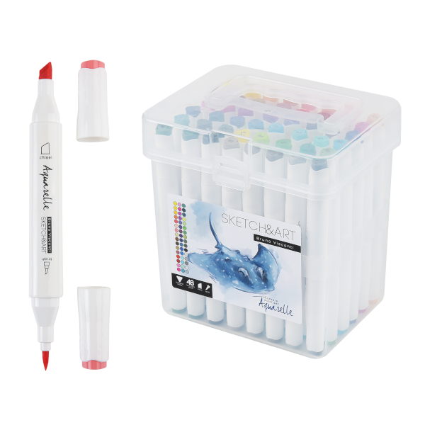 Набор маркеров акварельных Bruno Viscont "Sketch&Art" 48цв., двустор., кисть/скош. 22-0171