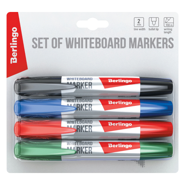 Набор маркеров для доски 2мм, спир.осн., пулевид, ассорти 4шт "Uniline WB200" BMc_40509 Berlingo
