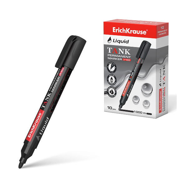 Маркер перм 2,25мм, спирт. осн., пулевид., черный, пластик. корп. Tank LP-600 48769 Erich Krause