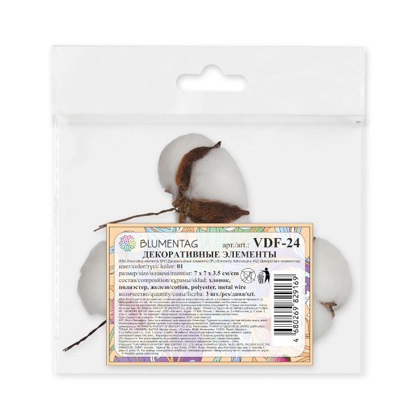 Элемент декоративный "Коробочки хлопка" 7*7*3,5см (3шт) VDF-24 Blumentag упаковка