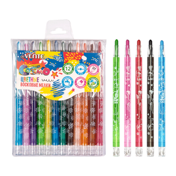 Мелки восковые deVENTE "Cosmo" 12цв, круглые, поворот., пласт.уп. 8077942