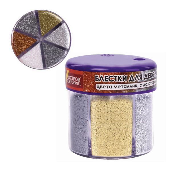 Блестки для декора (глиттер) Остров сокровищ МЕТАЛЛИК в диспенсере с дозатором 6цв по 10гр 662224