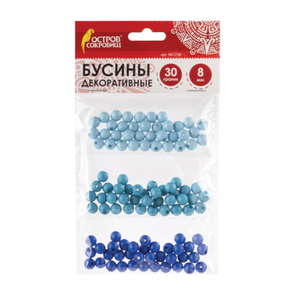 Набор бусин "Шарики" 8мм, бирюз/св.голубез голуб. 3*10гр 661236 Остров сокровищ