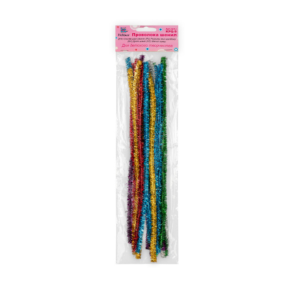 Проволока пушистая шенил 9мм, 30см, 30шт, блестящая, ассорти KPQ-9/SKPQ-9 Hobbius