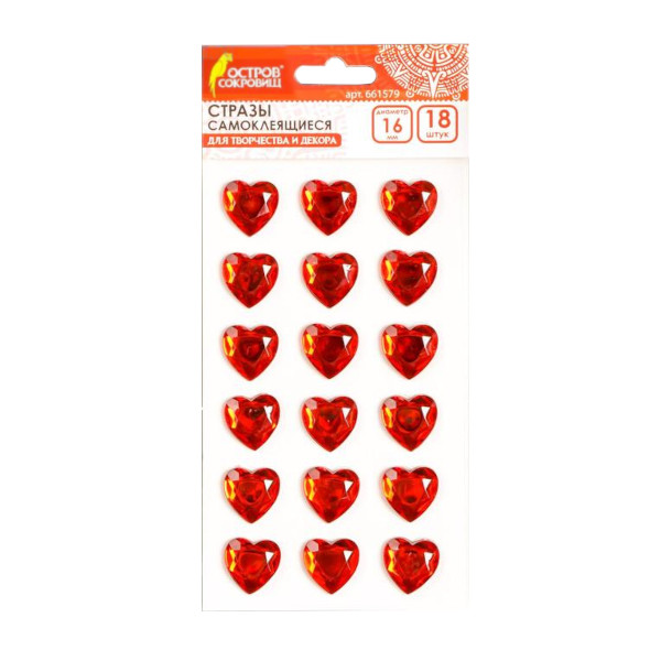 Стразы для декора самокл. "Сердце" 16мм, 18шт, ассорти 5132594 Остров сокровищ