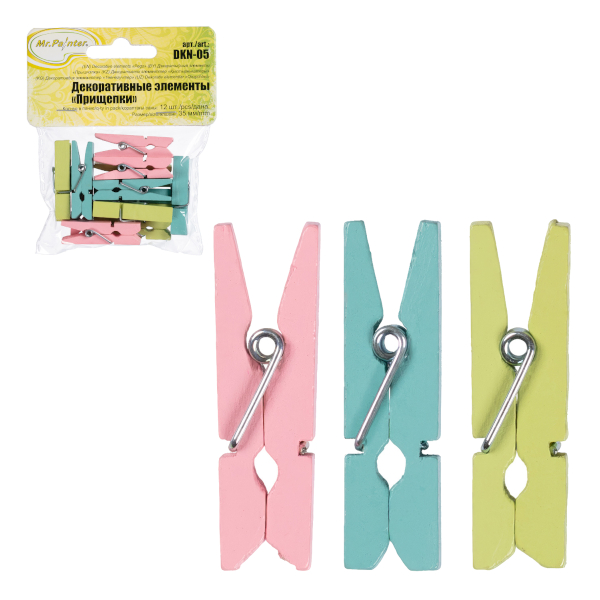 Декоративные прищепки "Утро" 12шт, 35мм деревянные (роз./салат./голуб.) DKN-05 Mr.Painter