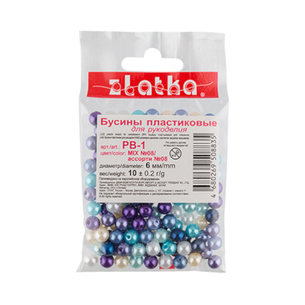Бусины "Zlatka" MIX пластик PB-1 6мм 10 г ± 0.2 г №08 ассорти