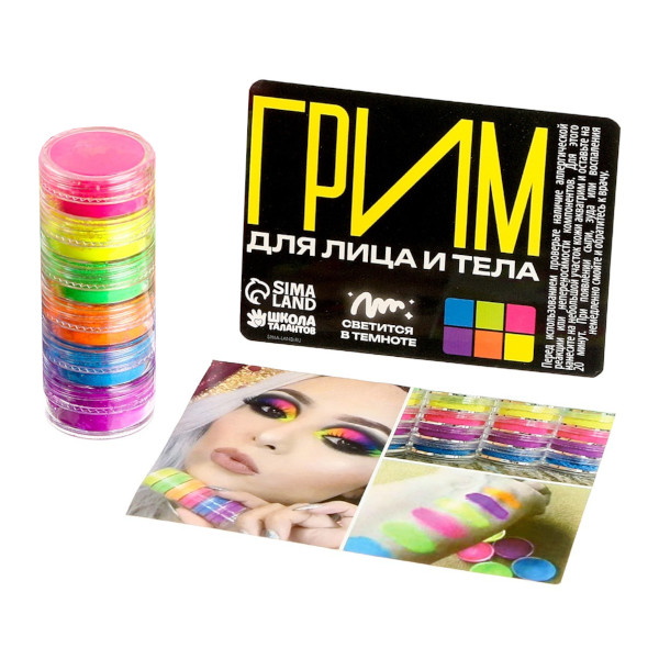 Грим для лица и тела "Светится в темноте" 6цв. 9925233 Школа талантов