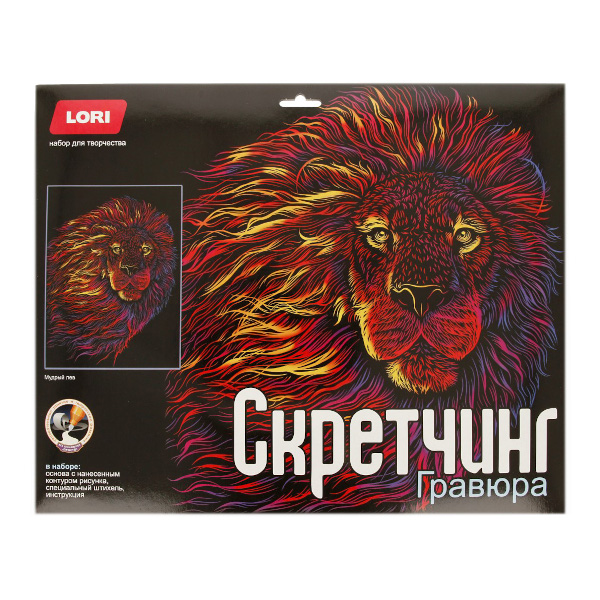 Набор для творчества Lori "Скретчинг. Неоновые животные. Мудрый лев" гравюра 30*40см, карт.уп Гр-753