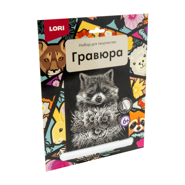 Набор для творчества Lori "Очаровательный енот" гравюра большая, с эффектом серебро, карт.уп Гр-612