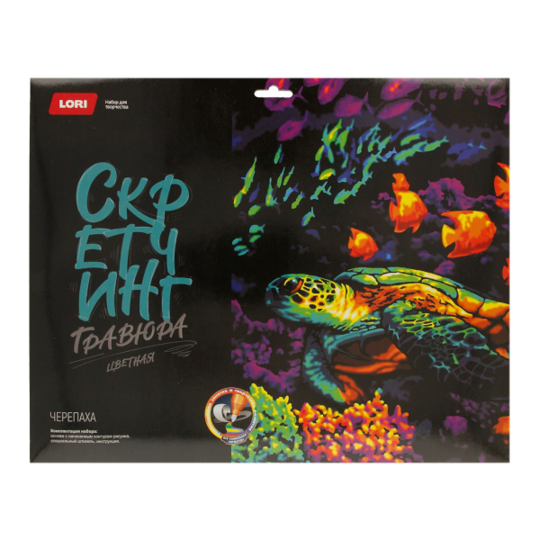 Набор для творчества Lori "Скретчинг. Неоновые животные. Черепаха" гравюра 30*40см, карт.уп Гр-780