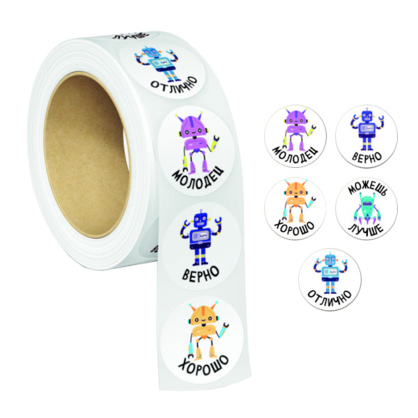 Наклейки мотивирующие "Роботы" d-15мм, 1000шт, рулон 8385 Квадра