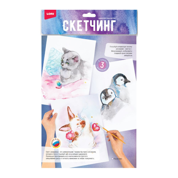 Набор для скетчинга акварелью "Пушистики" 3 основы Рн-043 Lori