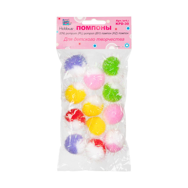 Помпоны 30мм, 15шт, 5цв. KPD-30 Hobbius