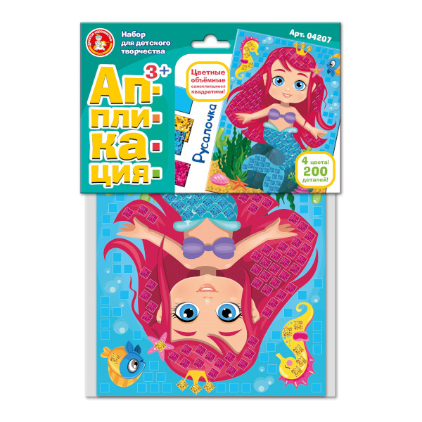 Набор для творчества "Аппликация для детей. Русалочка" 18*25см, 4цв., 200эл. 04207 Десятое Королевство