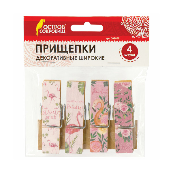 Декоративные прищепки "Фламинго" 4шт, 72мм деревянные 662678 ОСТРОВ СОКРОВИЩ