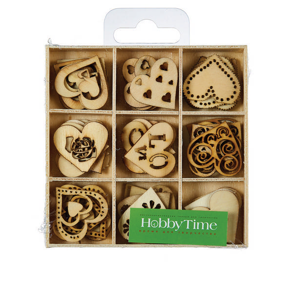 Декоративные элементы "Сердечки" набор № 27, из дерева, в дерев. органайз. 2-359/02 Hobby Time